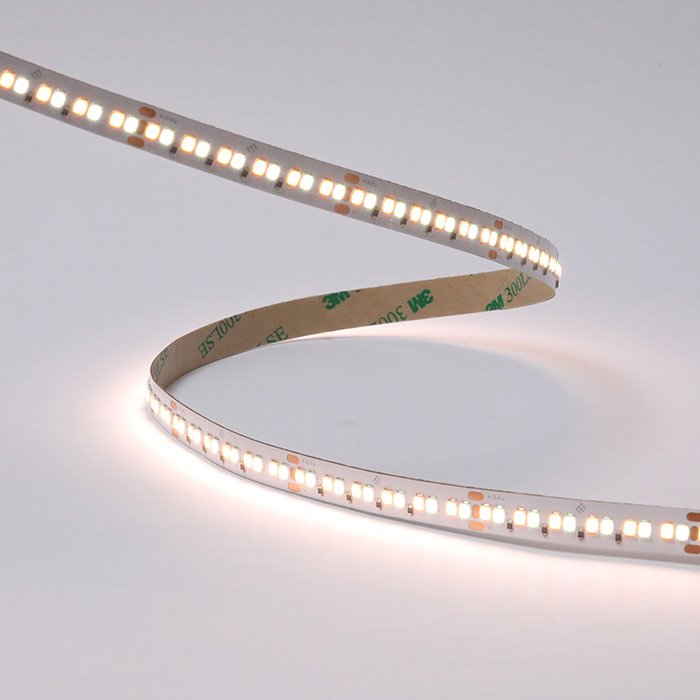 LED-Stripe CCT 24V erfüllt die Schutzklasse IP20. Es ist mit Markenchips der Firma Sanan in der Anzahl von 240 LEDs / 1m mit einer Farbwiedergabe Treue von CRI90+ (Color Rendering Index) ausgestattet. Effizienz und Lichtstärke wird durch einen hohen Lichtstrom von bis zu 2374 lm / 1 regelmäßigen Meter mit einer Palette von Farbtemperaturen gewährleistet: