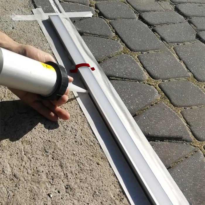 - Für eine einfache Installation der Silikon-Dichtmasse im Montageprofil.