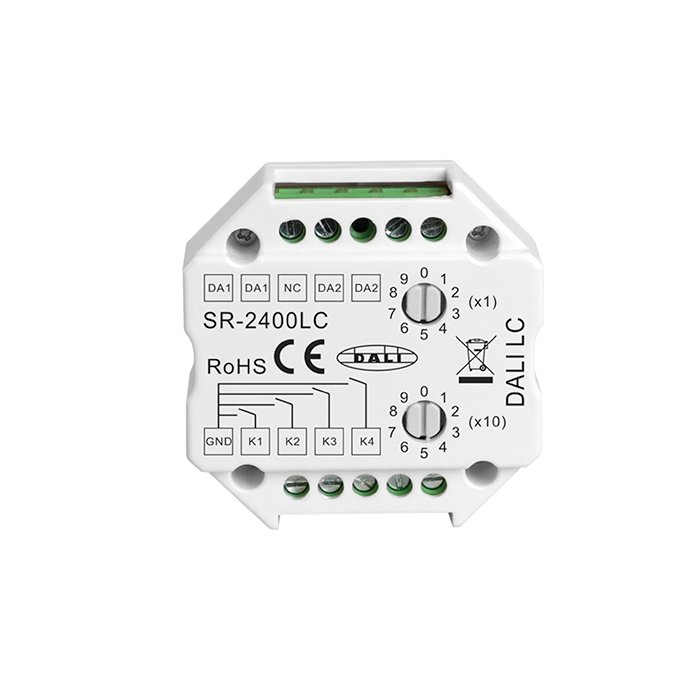 Das Tast-DALI-Relais-Modul bietet einen modularen Einsatz und gegenseitige Kompatibilität mit allen DALI-Systemen, wodurch komplexe Beleuchtungskonfigurationen mit verschiedenen Szenen erstellt werden können. Wir fügen dem DALI-Converter SR-2400LC weitere charakteristische Merkmale hinzu: