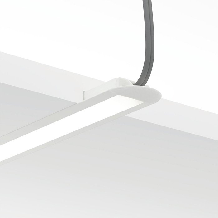 - Die Endkappe mit Öffnung ermöglicht ein einfaches Einstecken des Stromkabels für den LED-Streifen in der LED-Leiste.