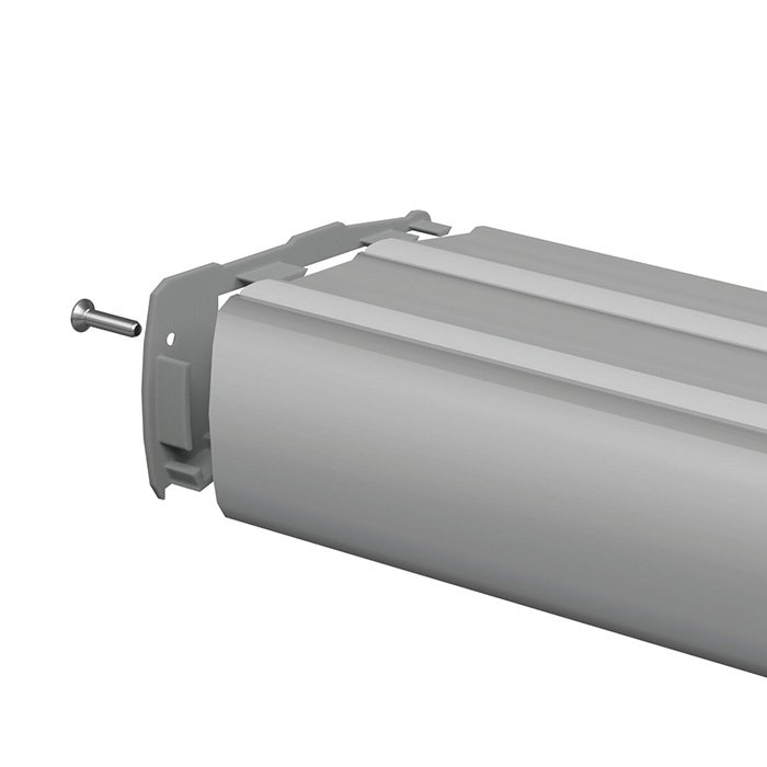Die Lieferung des Produkts beinhaltet nur die Kunststoffendkappe STEP-L link und Schrauben. Weitere geeignete und kompatible Komponenten finden Sie in der #souv#zugehörigen Ware##.