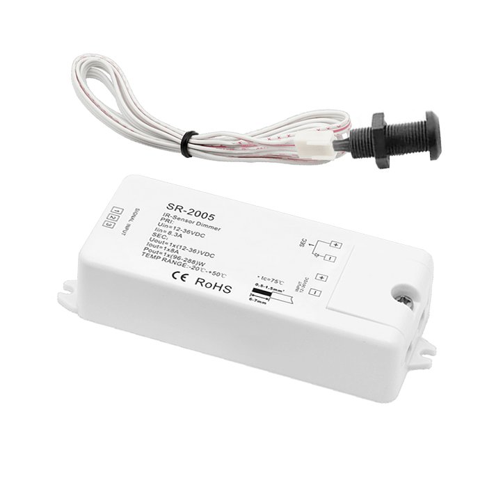 Der Touchless Möbel-Einbaudimmer für LED-Streifen - Sunricher SR-2005 ist eine einfache Möglichkeit, die Beleuchtung zu steuern. Der berührungslose Licht-Dimmer funktioniert nach dem Prinzip des Winkens vor dem Sensor. Die vom Sensor erfasste Geste bewirkt dann das Ein-/Ausschalten bzw. Anpassen der Beleuchtung. Der Möbeleinbau-Dimmer für LED-Lichtleisten bietet folgende Anschlussmöglichkeiten: