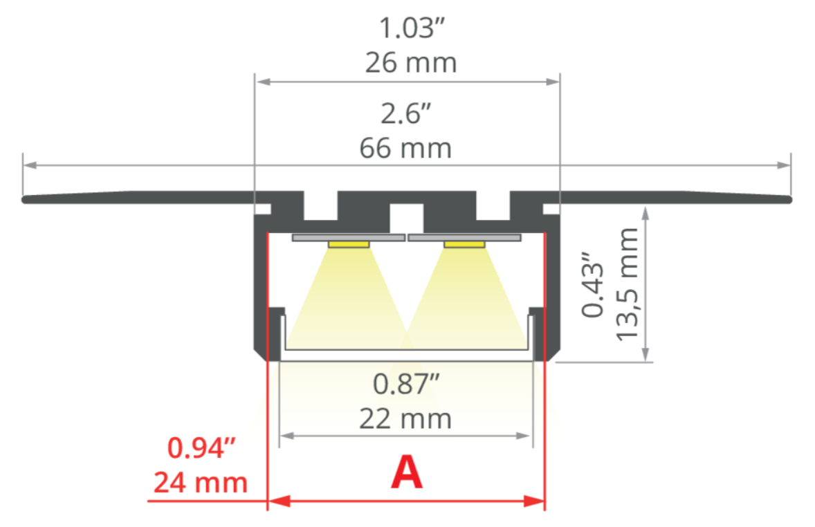 - Profilmaße für 2x LED-Streifen mit einer Breite von max. 12mm