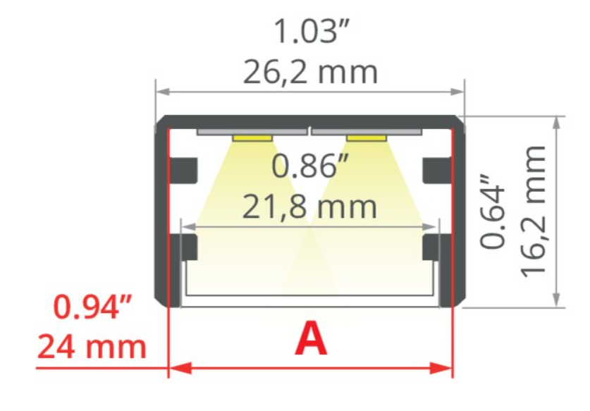 - Profilabmessung für 2x LED-Streifen mit einer Breite von max. 12mm