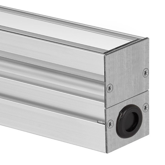 - Wir schätzen die Robustheit der gesamten Lösung, wenn die HR-MAX-TW Montageschiene für Bodenmontage mit einem der Beleuchtungsprofile kombiniert wird.