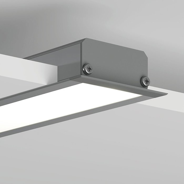 - Montage des Aluprofils für LED-Streifen in die Decke oder Wand mit sichtbarem Rahmen, der den Spalt zwischen den Profilen abdeckt.