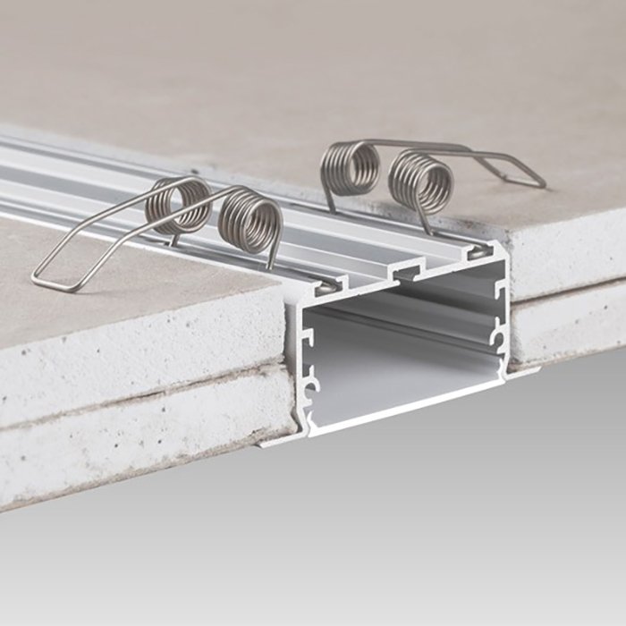 - Einfache Montage und Installation des LED-Profils im Trockenbau mithilfe der Montagefedern.