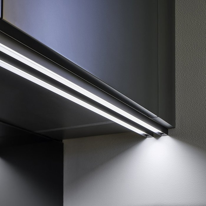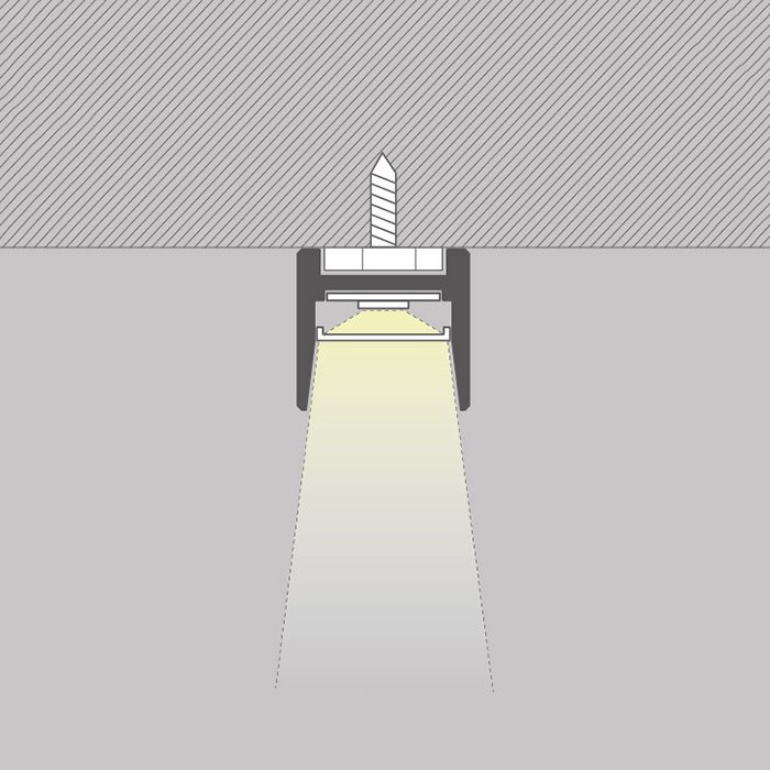 - Versteckte Lichtquelle zwischen den erhöhten Seitenkanten der Alu-Lichtleiste: