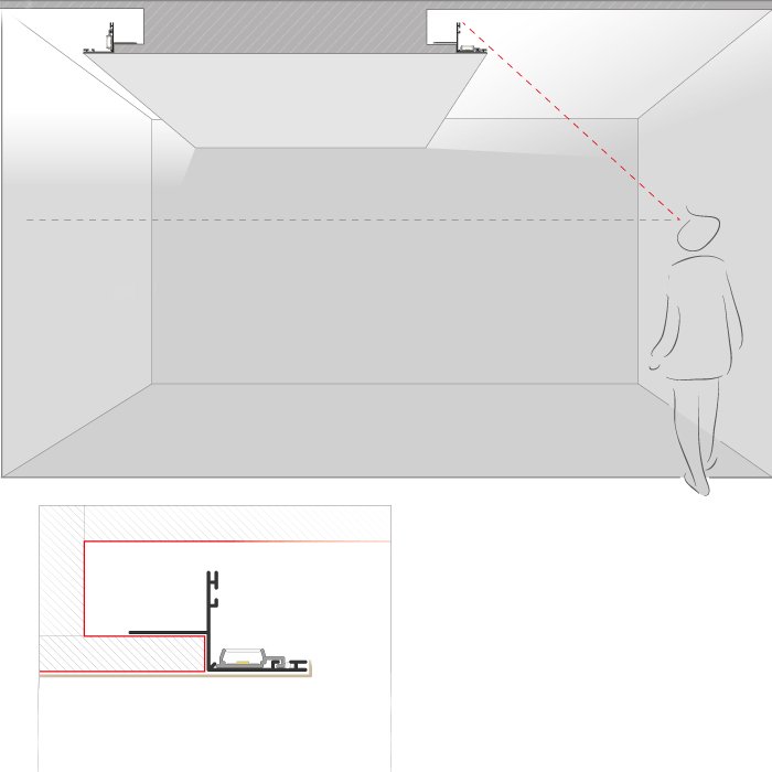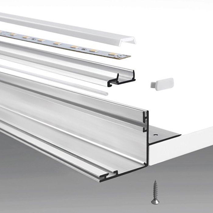 - LED-Leiste NISA-NI für indirekte Deckenbeleuchtung mit dem Effekt einer sehr dünnen Kante zur Veredelung der Gipskartondecke.