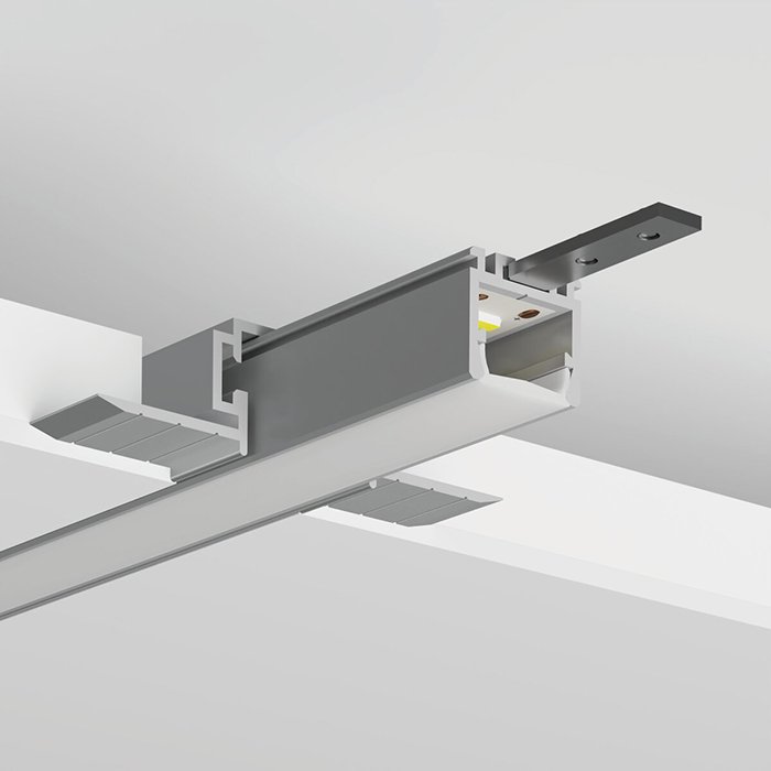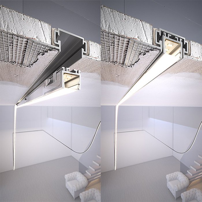 Für Architekten, Designer und Einzelinvestoren ermöglicht das LED-Trockenbauprofil die Montage von Einbauleuchten minimalistisches Design mit der Möglichkeit, eine hohe Lichtleistung zu erzielen. Wir fügen auch einige wichtige technische Lösungen der OPK-4-Leiste hinzu: