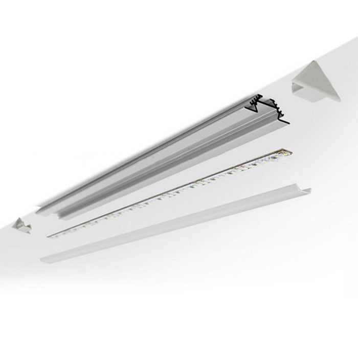 Die Winkelleiste der LED-Lichtleisten-Beleuchtung ermöglicht die Installation von ein #tablink#led-pasky#LED-Streifen## mit einer maximalen Breite von 13 mm. Je nach Ausführung und Form der Leuchte im Raum dient die Eckleiste für LED-Streifen zu dekorativen Beleuchtungszwecken. Wenn Sie nach einer Möglichkeit suchen, einen LED-Streifen um die Ecke oder Nische zu legen, ist die LED-Eckleiste PAC-ALU die ideale Wahl. Sowohl in Bezug auf die Kühlung des LED-Streifens als auch auf das ästhetische Erscheinungsbild.