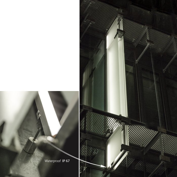 - Flächenbündiger Einbau in horizontaler oder vertikaler Lichtrichtung | Verwendung von Montagezubehör.