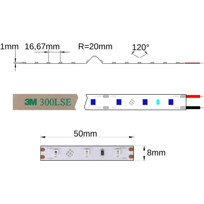 | Anzahl LEDs/m: | ≤ 120 LEDs/m |