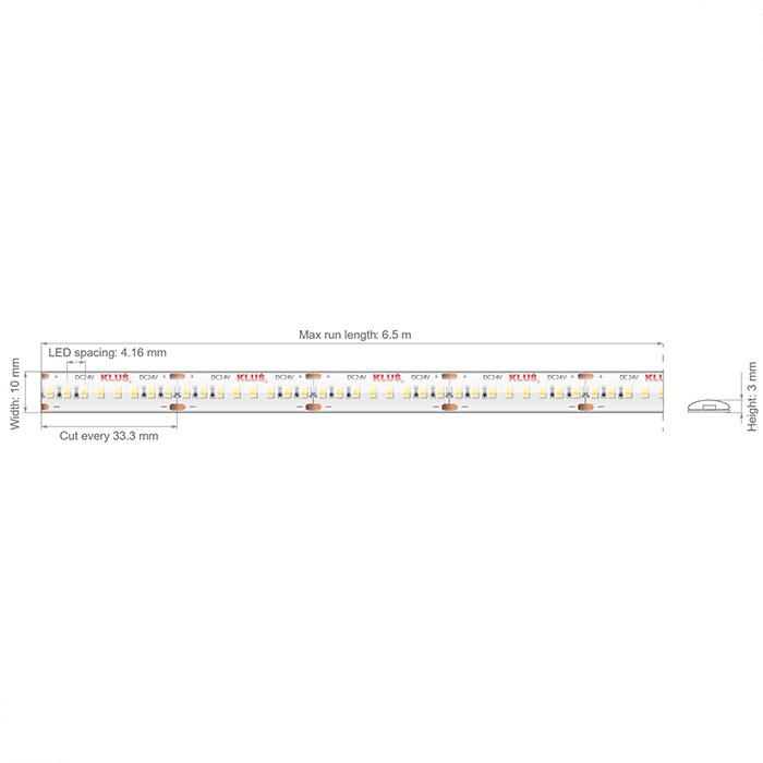 LED Streifen KLUŚ KWP-GHD-0960-24 9,6W/m 240LED/m CRI90+ IP65