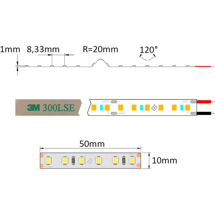 Auf der Unterseite der LED-Leiste - SC24120, finden Sie doppelseitiges Klebeband der höchsten 3M-Serie. Dies gewährleistet eine hervorragende Haftung auf der Aluminiumoberfläche, die typisch für LED-Profile ist. Wir empfehlen die Verwendung eines LED-Profils für die Installation eines LED-Streifens als die einzige und richtige Option.