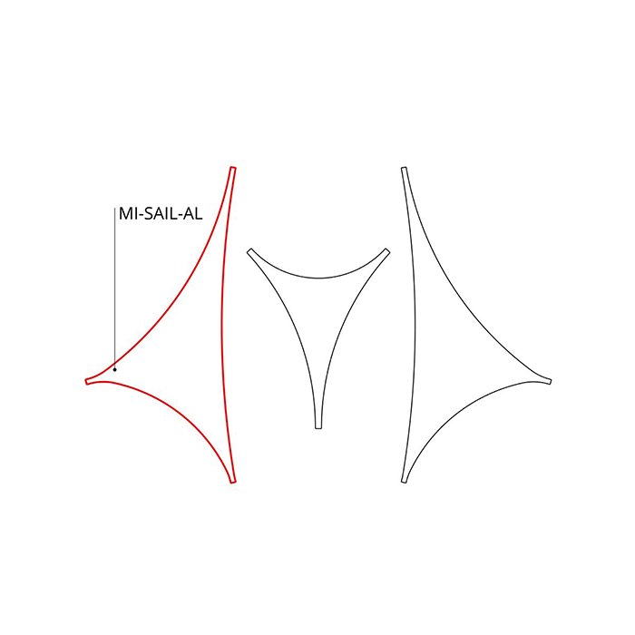 - Dereieckuge Hängeleuchte MI-SAIL-AL in der gewählten Farbe: