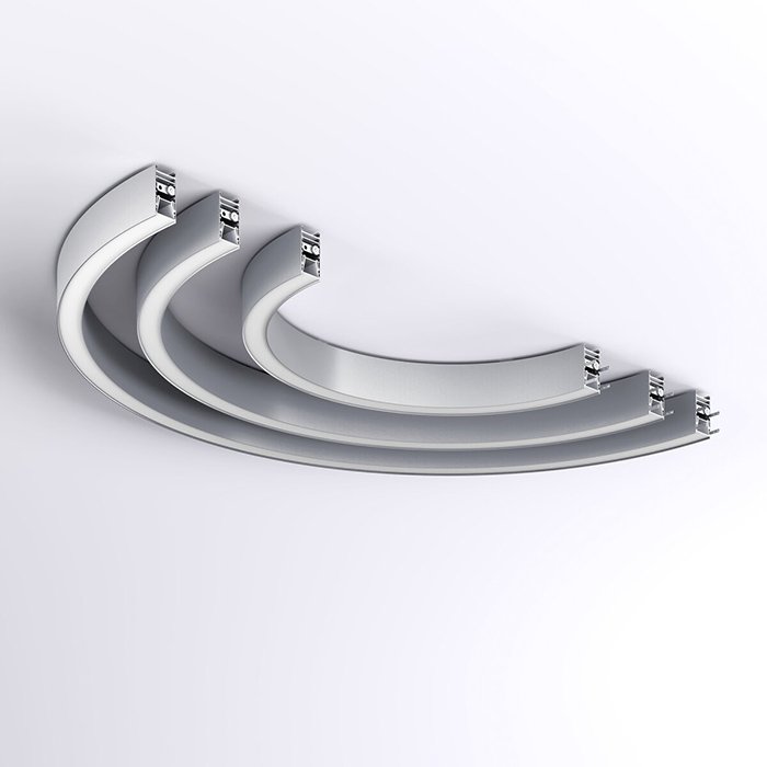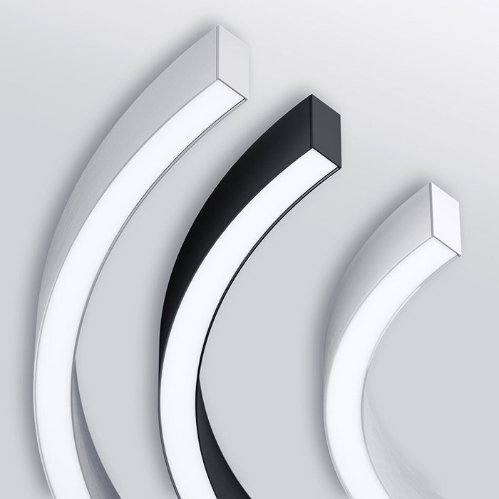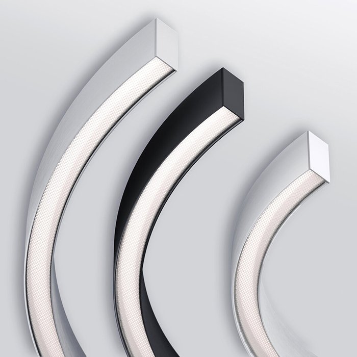 Die halbrunde LED-Leuchte KLUŚ SERPENT R-PLUS NT 1/2 mit einem Radius von r=600mm kann als eigenständige aufgesetzte Leuchte oder als Bestandteil eines Beleuchtungssystems für die Fertigung individueller Leuchten polygonaler Formen verwendet werden. Sie bietet eine hohe Lichtausbeute mit einem Wert von CRI 90+ für eine getreue Farbwiedergabe, ein minimalistisches Design und eine erstklassige Produktverarbeitung, die für eine lange Lebensdauer sorgt. Die verwendeten Materialien mit einem geringen CO2-Fußabdruck sind umweltfreundlich und helfen bei der Schaffung nachhaltiger Bauten. Dank der hohen Modularität ist dieses System ideal für umfangreiche Projekte, wo individuelle Anforderungen an die Länge, die Form oder die Verteilung der Lichtquellen zu respektieren sind.