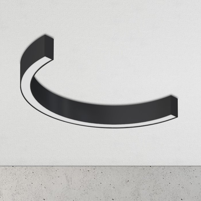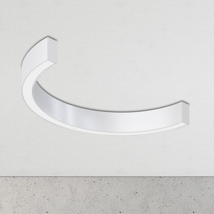 Die halbrunde LED-Leuchte KLUŚ SERPENT R-PLUS NT 1/2 mit einem Radius von r=750mm kann als eigenständige aufgesetzte Leuchte oder als Bestandteil eines Beleuchtungssystems für die Fertigung individueller Leuchten polygonaler Formen verwendet werden. Sie bietet eine hohe Lichtausbeute mit einem Wert von CRI 90+ für eine getreue Farbwiedergabe, ein minimalistisches Design und eine erstklassige Produktverarbeitung, die für eine lange Lebensdauer sorgt. Die verwendeten Materialien mit einem geringen CO2-Fußabdruck sind umweltfreundlich und helfen bei der Schaffung nachhaltiger Bauten. Dank der hohen Modularität ist dieses System ideal für umfangreiche Projekte, wo individuelle Anforderungen an die Länge, die Form oder die Verteilung der Lichtquellen zu respektieren sind.