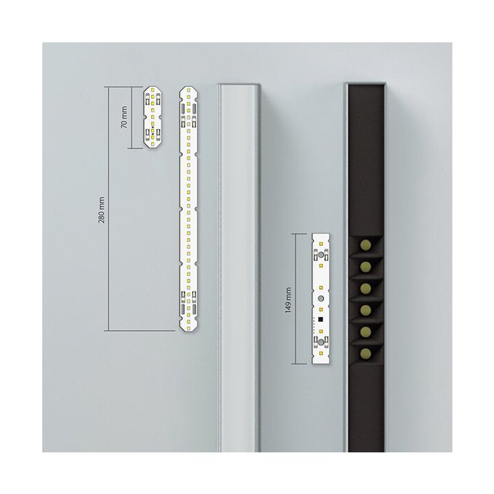 - die Länge einer Leuchte - gerade Module stehen in unterschiedlichen Längen zur Verfügung, was die Schaffung von Leuchten entsprechend den gewünschten Proportionen und der Größe eines Raums ermöglicht. Diese variablen Längen lassen sich verbinden, wodurch die Geschlossenheit des Designs erhalten bleibt.