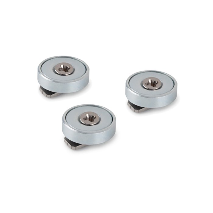 - Satz von 3 Magnethaltern für ferromagnetische Metalloberflächen.