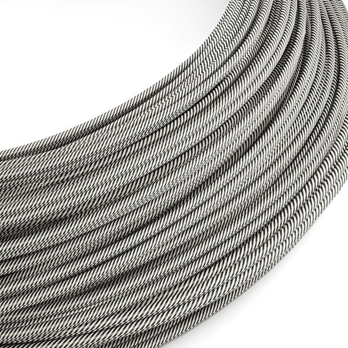 Auch die Verarbeitungsqualität des umflochtenen Kabels "Glossy White vs Slate" - ERM37 ist außergewöhnlich. Hervorragende mechanische Eigenschaften und Flexibilität der Leitung beim Biegen werden durch eine hochwertige PVC-Isolierung gewährleistet. Die Produktion "MADE IN ITALY" ist eine Garantie dafür, dass das Produkt alle europäischen Sicherheitsvorschriften erfüllt.
