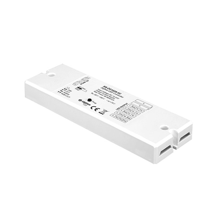 Der ZigBee Controller für CCT, RGB, RGW, RGBWW LED-Streifen Sunricher SR-ZG1029-5C, ist ein Gerät zur Regulierung der Helligkeit und der Farben von LED-Beleuchtungen in Smart Home-Anwendungen. Der LED-Controller unterstützt die ZigBee 3.0 Version, so dass die Reichweite des Gerätes bis zu 75m beträgt, abhängig von der Umgebung. Das gekoppelte und mit dem ZigBee-Gateway verbundene Gerät fungiert auch als Zigbee-Signalverstärker/-repeater. Ein weiterer Vorteil ist die Möglichkeit, den ZigBee-Controller zum Dimmen von Sunricher LED-Streifen, über einen PUSH-DIM-Tastendimmer zu steuern. Sie können den Zigbee RGB-Controller für die folgenden Anschlussszenarien verwenden: