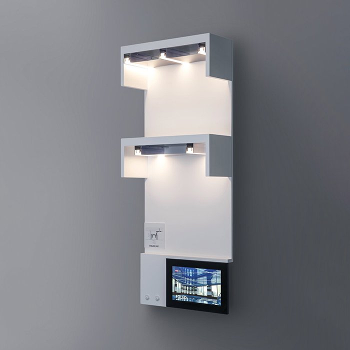 Die KLUŚ Werbetafel - P230 FOLED/FOLED-SUF, ist eine äußerst attraktive und wirkungsvolle Präsentation von Produkten und ausgewähltem Zubehör. Für Kunden aus den Reihen der Architekten, Innenarchitekten oder Einzelinvestoren ist sie eine große Hilfe bei der Auswahl geeigneter Lichtlösungen mit den Produkten: